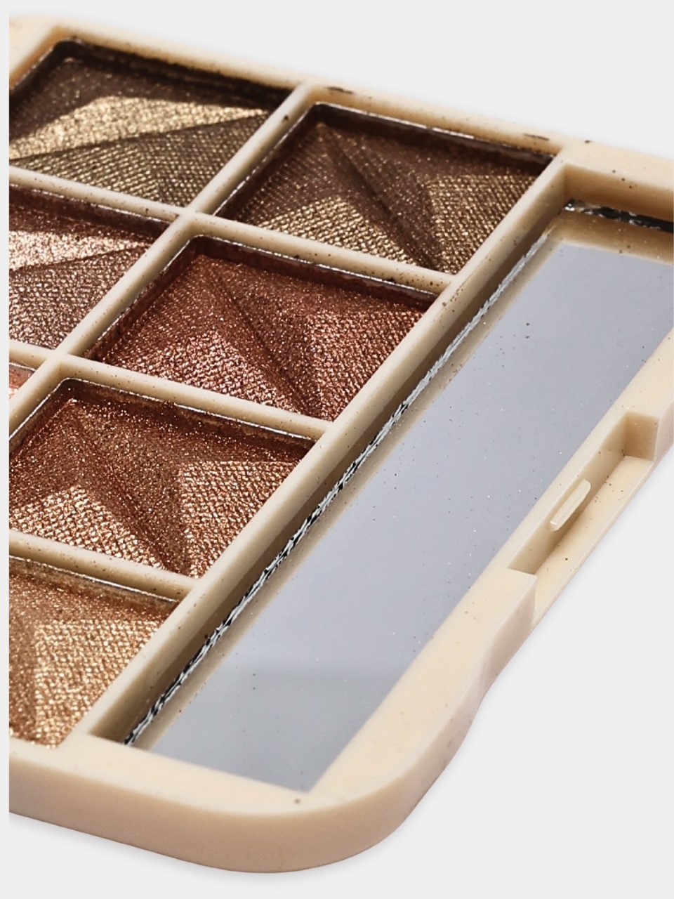 Kompakt paletka: Olib yurish uchun qulay, ichida koʼzgu va soyalarni qoʼyish uchun applikator mavjud.